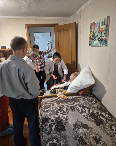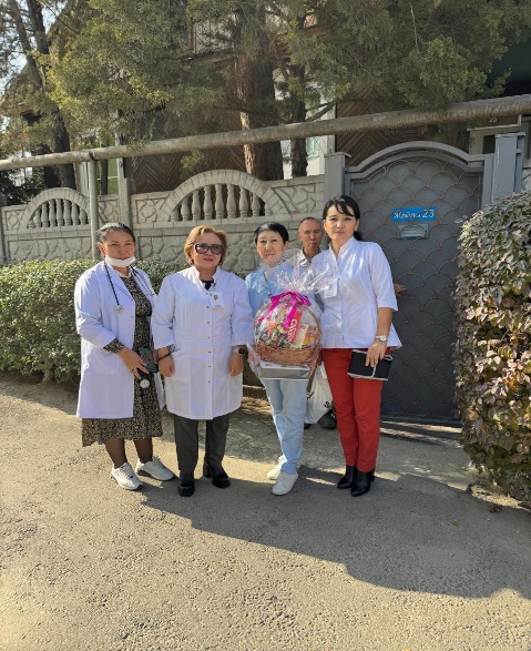 Республика күні мерекесі қарсаңында ҚДСБ ШЖҚ «№ 23 қалалық емхана» КМК директоры Ашен Сауле Ахатқызы және емхананың салалы мамандарынан құралған топ мүшелерімен 90 жастан асқан қарт жандардың үйлеріне арнайы барып, хал-жағдайын сұрап, денсаулығын тексеріп, сый-сияпат табыс етті.